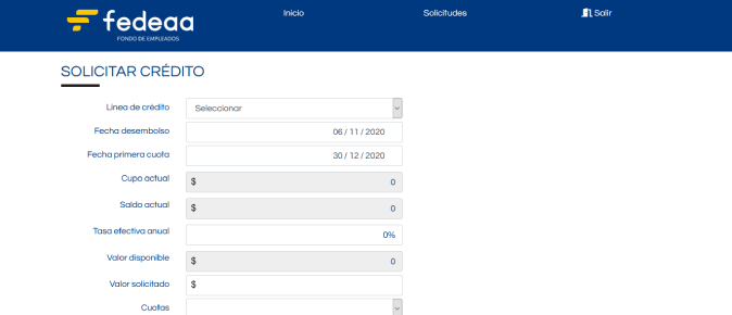 - Sistema de solicitud de crédito en línea e integración con Deceval